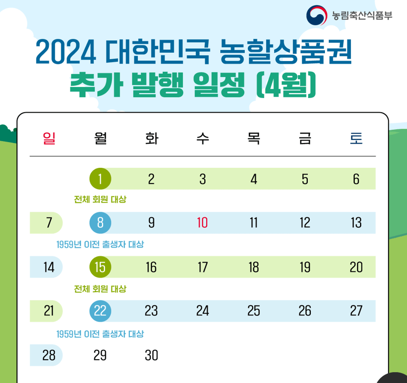 소비자 물가 부담을 완화하기 위해서 농림축산식품부에서는 30% 할인된 금액으로 구매할 수 있는 농축수산물 전용 상품권으로 농할상품권을 4월 말까지 발행하기로 했습니다. 구매방법과 사용처를 알아보고 꼭 혜택을 받으시길 바랍니다.
