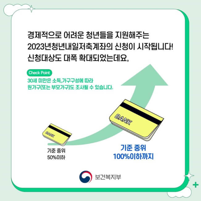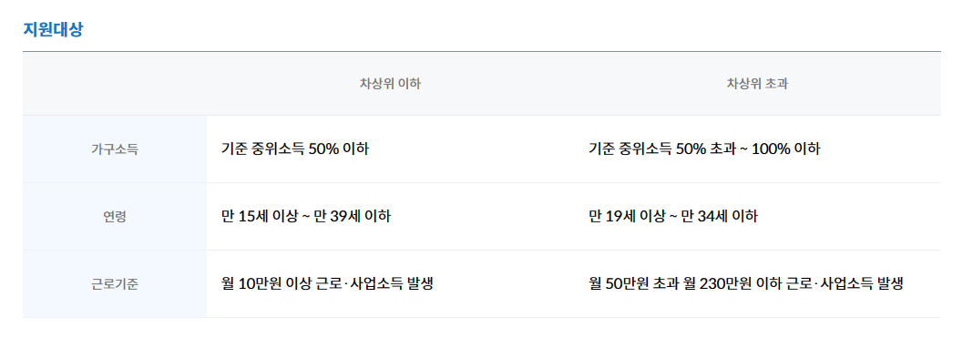 - 단, 수급자 · 창상위자 · 기준 중위소득 50%이하자는 만 15세 ~ 만 39세까지 허용
