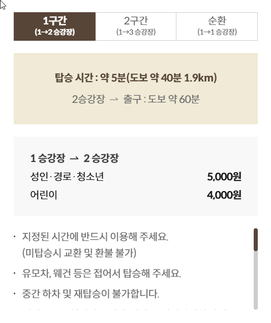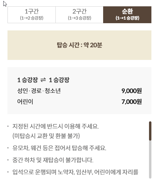 → 정해진 시간에만 탑승 가능 ( 10분 전 승강장에서 대기 )